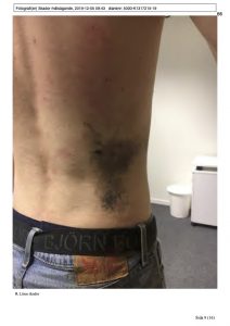 Ryggskador på Jonas son efter förnedringsrånet. Från polisens förundersökning. Framtaget av Exakt24.
