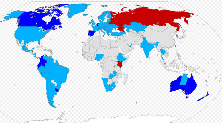 Områdena på kartan som är mörkblå har legaliserat aktiv dödshjälp. I de ljusblå områdena, exempelvis Sverige, tillåts passiv dödshjälp. I de rödmarkerade områdena tillåts ingen som helst dödshjälp alls.